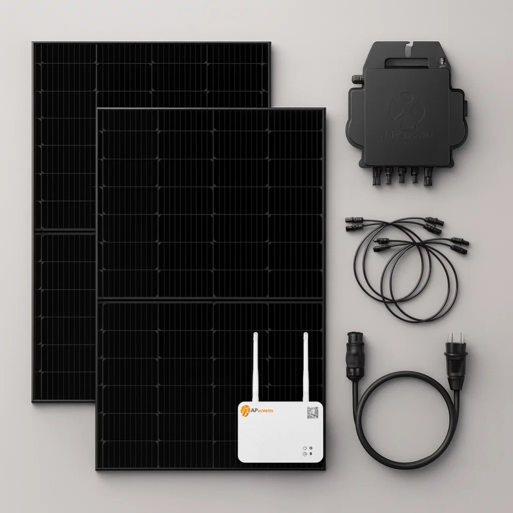 Das 800W Balkonkraftwerk mit APsystems DS3-M ermöglicht Ihnen die einfache und effiziente Eigenstromerzeugung direkt über die Steckdose. Die Kombination aus zwei leistungsstarken 420W Glas/Glas Full-Black Modulen und dem modernen 800 VA Mikro-Wechselrichter sorgt für maximale Energieausbeute bei minimalem Installationsaufwand.